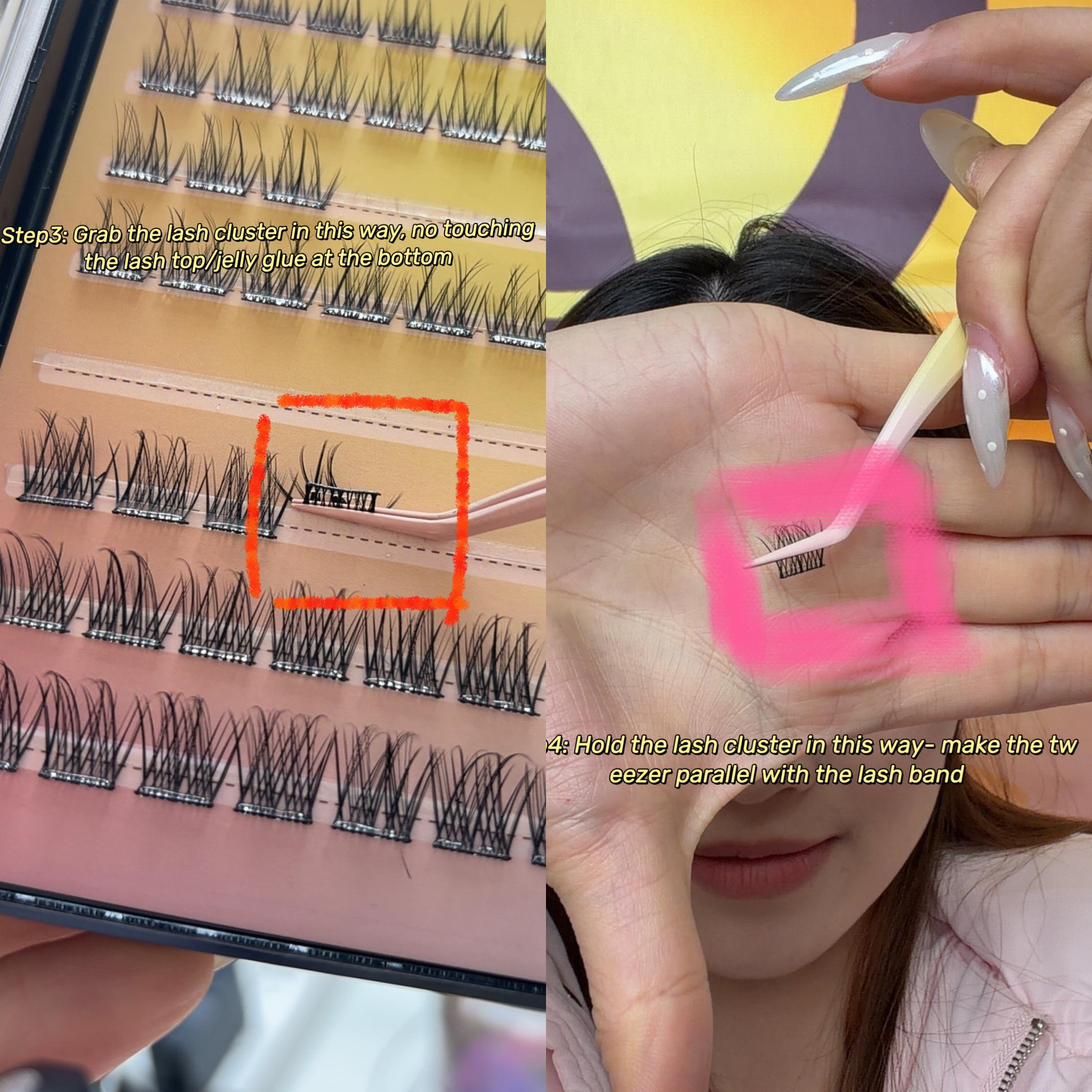 Step 7.Press the lash cluster to make sure the jelly glue on the backside stick on ur skin