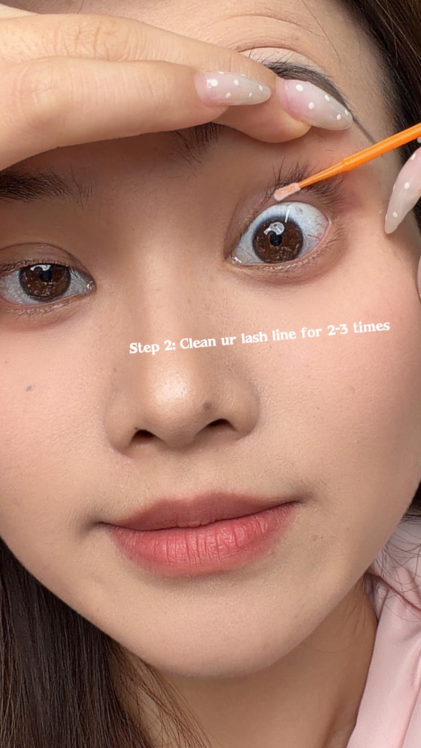 Step 2.Clean ur lash line with the Q-Tip we send to u for 2-3 times(every time using new Q-tip) (️make sure u removed the oil &makeup residue on ur lash line) ️