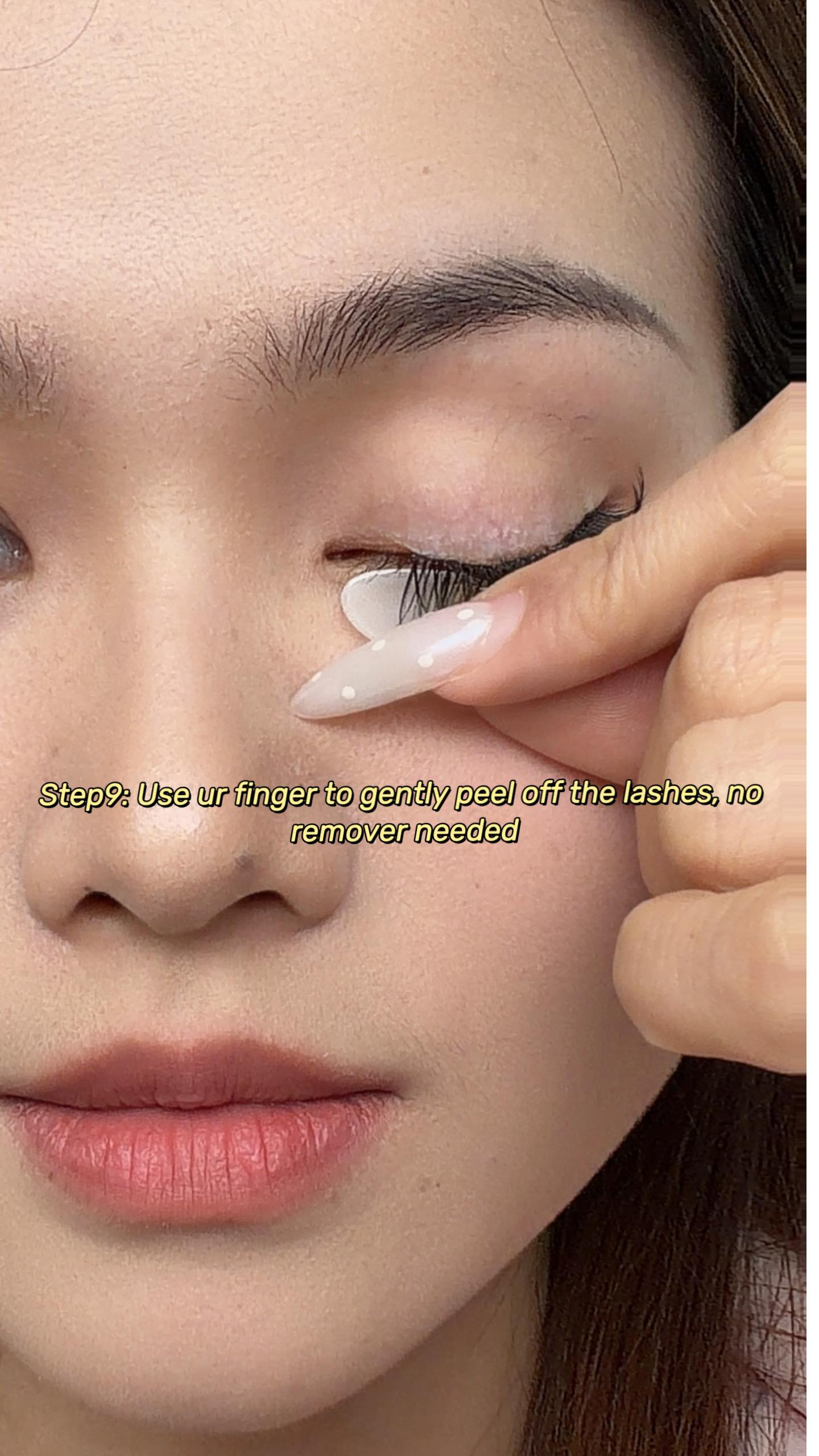 Step 9.Use ur finger to gently peal the lashes off.No additional remover is needed!