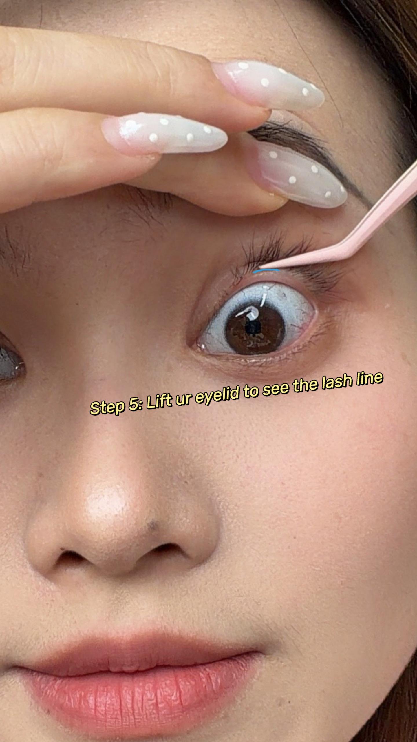 Step 5.Lift ur eyelid to make sure u see the lash line(the root of ur natural lashes)