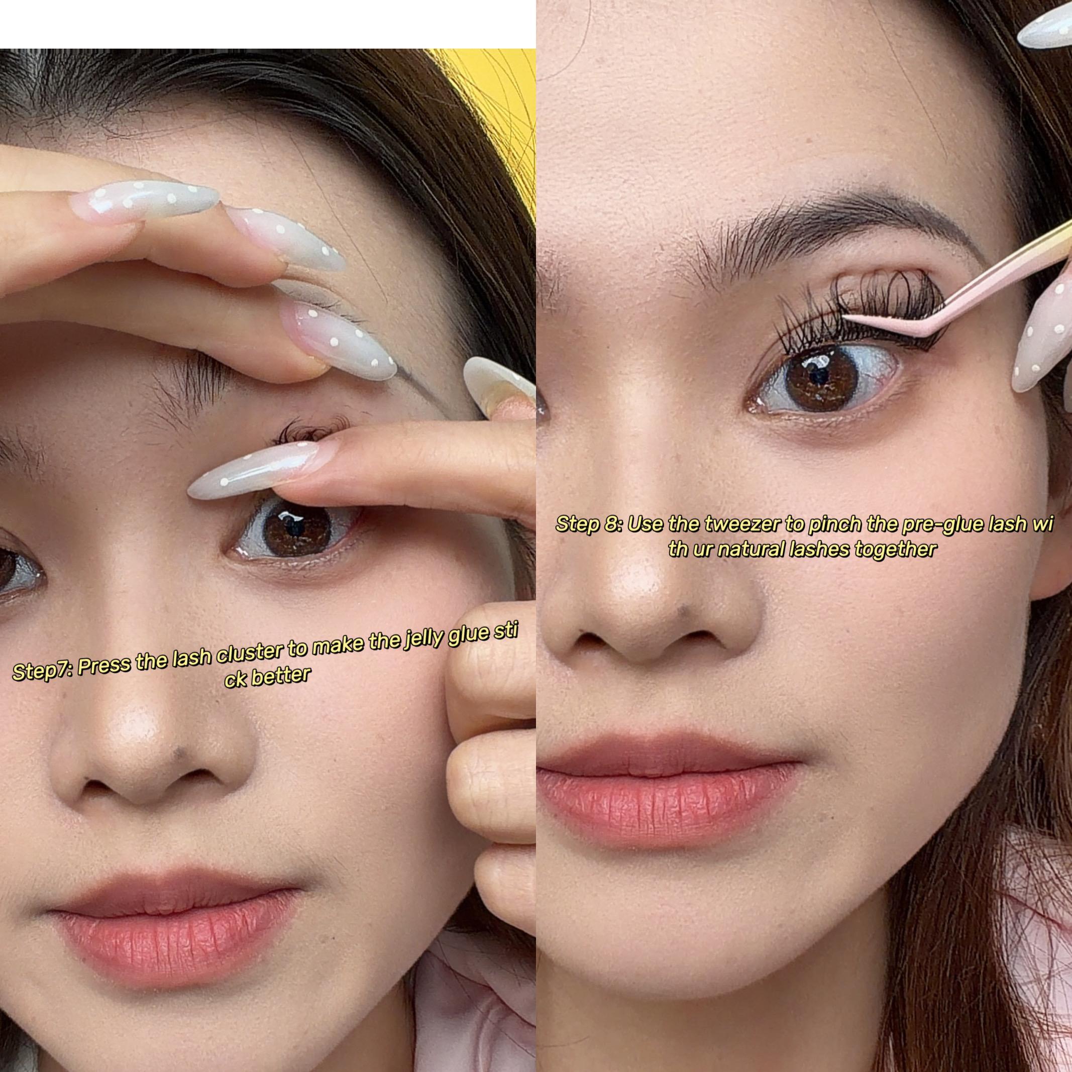 Step 7.Press the lash cluster to make sure the jelly glue on the backside stick on ur skin