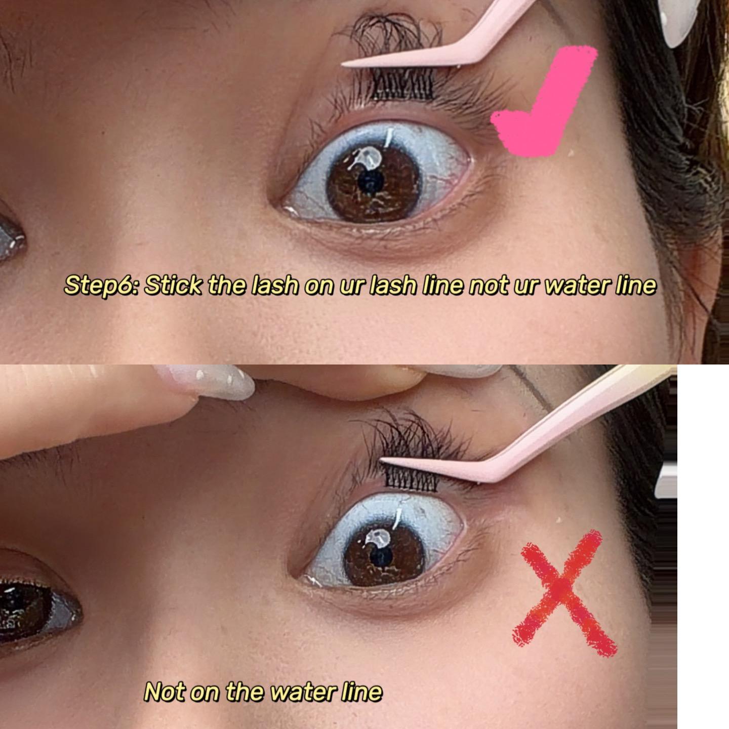 Step 6.Stick the lash on ur Lash Line Not ur Water line️, just underneath ur natural lashes